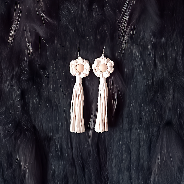 Les boucles d'oreilles Flora ajoutent une touche de fantaisie avec cette fleur et sa perle en bois.